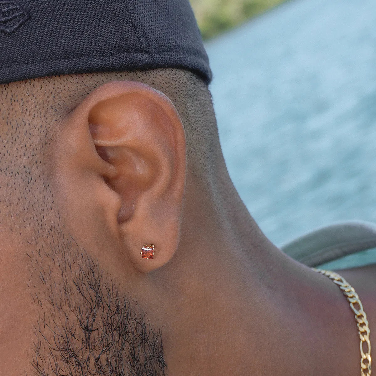 ✔ Diseño cuadrado con circonia roja llamativa
