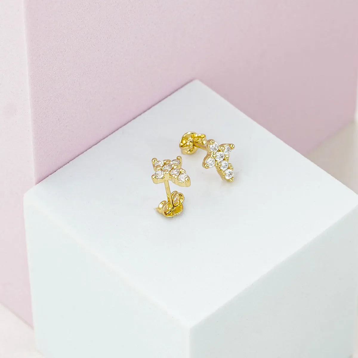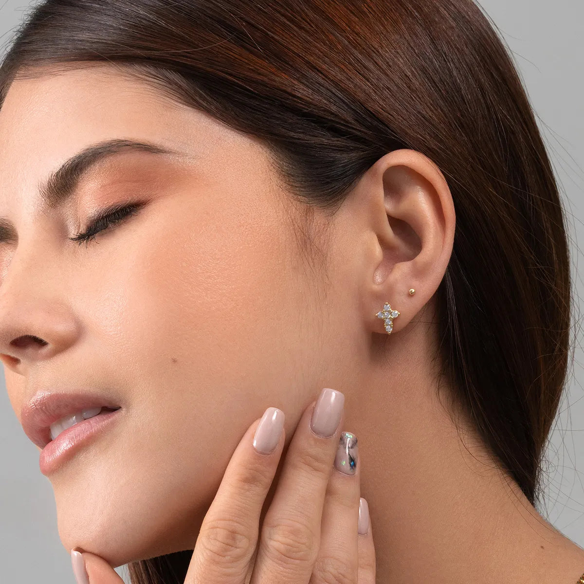 Los Topos Cruz 6 Circonias en Oro Laminado son pendientes con un diseño elegante y simbólico, perfectos para quienes buscan un accesorio con significado espiritual y un toque de brillo refinado. Su figura de cruz adornada con 6 circonias brillantes aporta luminosidad y sofisticación, ideal para complementar looks tanto diarios como formales.